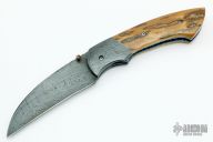 Damascus and Mammoth Ivory Hawkbill Linerlock