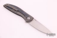 This Neon NL by Shirogorov features tumbled blade with notched thumbrest and flipper. The handle has a tumbled titanium frame with crazy micarta inlays. Comes with box and papers. Rides on MRBS. Excellent condition.