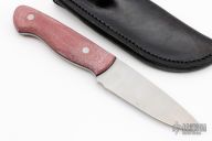 I'm pretty new to the knife making scene; I made my first knife in 2010. I've learned through trial and error, and am constantly challenging myself. Many of my materials and designs have historical inspirations. I cast my own alloys such as bronze and shibuichi to use for fittings. I use carbon steel in my knives, primarily 1084, because there are so many things you can do with carbon steel that you cannot do with stainless. I claim sole authorship of my work, from designing the blade and doing my own heat treatment, to sewing up the leather sheath.