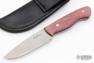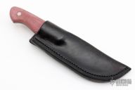 This fixed blade features a satin finished drop point blade with a full tang construction.  .120" Blade Stock.  1.171" Blade Depth.  The handle scales are TeroTuf with black G10 liners. Comes with black leather sheath. Light oxidation and scratches are visible on the blade/tang otherwise the knife is in good condition.