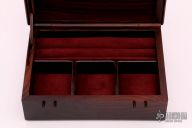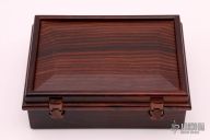 This cocobolo box by Tomway is set up to display a rings and jewelry. 8.5" wide x 6.125" deep x 3.75" tall. Excellent condition.