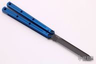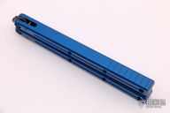 The highly anticipated Krake Raken balisong butterfly knife offers the first live-blade bali from Squid Industries. It features all of the precision-engineered smoothness of a Squid trainer, updated with a beautifully finished tanto blade. The channel constructed aluminum handles are built with rounded edges, a crowned spine, and bushings. The Krake Raken has been upgraded from 6061 to a 7075 aluminum alloy, which boasts a higher strength and is more durable to drops and use.