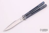 Petrel Balisong collaboration between from Maxace & Midnightcat Studios. It has a satin finished blade with anodized titanium handles. Comes with original zippered case and a brown leather sheath. Excellent condition.