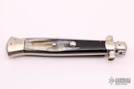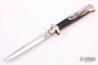 Angelo Campolin Sr. was born in 1923 in Maniago, Italy. He worked on perfecting his knife making skills before WWII and at this time made his first switchblades. After the war, in 1947 he started his company and made 30 stilettos with the marking “Angelo Campolin”. In the 1970’s Angelo’s son Gianni started to work in the company and they were specializing in folding hunting knives and also manual folding stilettos for the Robert Klaas company in Solingen Germany with their Kissing Cranes mark. In 2002 American switchblade collectors Dan Fuller, Brad West, and Tim Zinser were visiting Maniago and enjoying a few glasses of wine in a bar with Angelo Jr. and Gianni. The discussion was about a new name for some knife projects they wanted to pursue. It was Brad West that suggested the tang stamp should be AGA, for Angelo, Gianni, Angelo, thus representing three generations in the knife making business. The Campolins liked it and it stuck. In the beginning it was just a few items, but grew to the point where now there are 12 models and different scale options. The goal has been to offer quality switchblades using the old methods and traditions. Being a collector himself, Angelo Jr. knows what others like. The company headquarters has moved to Austria with production still in the original Maniago shop, as well as the others in Maniago that produce the knives for A.G.A. Campolin.
