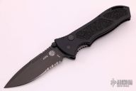 The ATFK Auto (Advanced Tactical Folding Knife) is built to meet the most rigorous demands. The blade is cryogenically hardened and ground for strength and excellent penetration capabilities. The handle design provides superior ergonomics and with the Wing Walk (grit)inserts, assures a firm grip. Black blade and black aluminum handle with non-slip inserts and tip up or down reversible clip. Excellent condition. RARE! Comes with original box, sheath and papers.