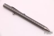 This unique bolt-action pen is made completely of titanium with the only exceptions being the ink cartridge, the spring, and the O-ring. Pen is new from Mr. Fellhoelter and comes in original plastic storage tube.