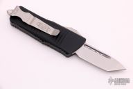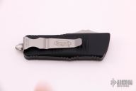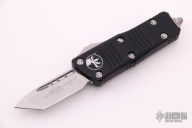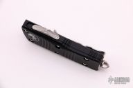 This Troodon Mini OTF automatic by Microtech knives features a stonewash finished tanto blade, and a black aluminum handle with bead blasted hardware, tip down carry. Glass breaker. S/N 1484. Dated 03/2021. Comes with original box and papers. Excellent condition.