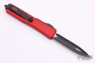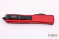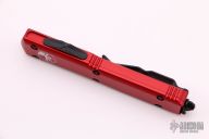 This Ultratech OTF automatic by Microtech features a D/E black blade with one fully serrated edge. Red aluminum contoured frame with black hardware and tip down stainless steel clip. Dated 05/2021 and s/n 202250. New from the 2021 Blade Show. Includes original box and papers.
