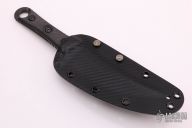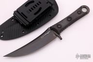 This SBK is a collaboration with Borka Blades and Microtech Knives, it features an upswept DLC tumble finished blade with false top edge and notched thumbrest, .192" blade stock and 1.292" blade depth, full tang construction with carbon fiber scales, black hardware and a lanyard hole at the butt. Includes kydex sheath, box and papers. Dated 06/2021, S/N 040. New condition.