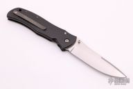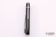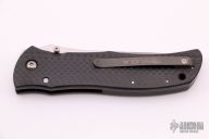 This Century Starfighter from Bob Terzuola features a tumbled blade with dual thumbstuds. The handle has carbon fiber scales with a single titanium liner, black backspacer, tip up titanium clip, lanyard hole. Nice detent, lockup and blade seating. Excellent condition.