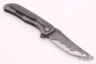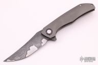 This Persian flipper by Kody Eutsler features a Chad Nichols Armor Core San Mai Damascus blade with flipper. The handle has a tumbled titanium frame with zirconium pivot collars, backspacer and tip up clip. Rides on bearings, nice detent, lockup and blade seating. Comes with a hard case and COA dated 10/23/2017. Excellent condition.