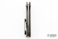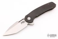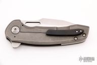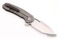 This flipper by Nova Blades features a lightly stonewashed harpoon style blade, thumbhole, notched thumbrest and flipper. The handle has a tumble finished titanium frame with a zirconium tip up clip and a titanium backspacer. Rides on bearing, nice detent, lockup and blade seating. Comes with padded case. Excellent Condition.