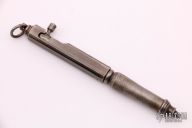 This Bolt Action Pen from Hidetoshi Nakayama features a multi-finish grip and shaft, bolt action locking mechanism, and lanyard ring. Refillable - takes Caran d'Ache of Switzerland, Giant Cartridge Goliath, 8428.000 Medium Black refills. Excellent condition.