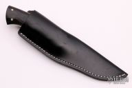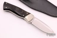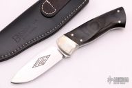 This knife was designed by Buster Warenski and produced by Ensign Knives.  This knife features a mirror polished blade,  nickel silver bolsters and dyed wood scales over a tapered tang construction.  .168" Blade Stock.  1.075" Blade Depth.   Includes a black leather sheath.  The is a chip towards the tip of the blade otherwise the knife is in Excellent Condition.