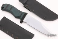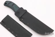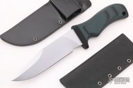 This Accipiter by MadDog Knives features a clip point blade with a false top edge, .250" stock. 1.480" blade depth. Selectively tempered, the knife has a Rockwell C-scale hardness of 62 at the edge (as hard as a file), and HRC 50-54 throughout the spine and hidden full tang. Hard chrome blade finish. With "Mad Dog" on the blade. The black/green G-10 handle is designed to be ergonomic and has the ability to withstand tremendous punishment with little or no damage. It is hard and tough enough to be used as an impact tool. Includes a Hi-Ride sheath and Shirasaya. New from maker.