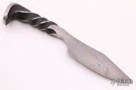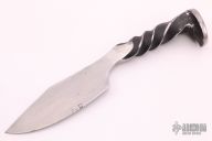 This Southern Pacific Cooper Spike Knife was hand forged from a Southern Pacific Railroad spike, has notched thumbrest, .167" blade stock and 1.403" blade depth, integral construction. Has some staining and scratches, otherwise good condition.