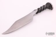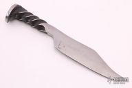 This Southern Pacific Cooper Spike Knife was hand forged from a Southern Pacific Railroad spike, has notched thumbrest, .199" blade stock and 1.407" blade depth, integral construction. Has some staining and scratches, otherwise good condition.