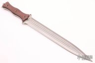 This FMV14 by Busse Knives features a competition finished double edged blade with .25" blade stock and 1.72" blade depth, full tang construction with red canvas micarta scales. Excellent condition, no signs of use or carry.