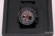 Introducing the Citizen Eco-Drive Navihawk A-T. With Atomic Clock synchronization for superior accuracy, this radio-controlled timepiece displays digitally the time in 43 cities, and has a 99-minute countdown timer and Coordinated Universal Time display. This Navihawk is stainless steel with black ion plating, with a deep embossed black polyurethane strap and orange accents on the dial.Featuring our Eco-Drive technology – powered by light, any light. Never needs a battery. Caliber number U680.