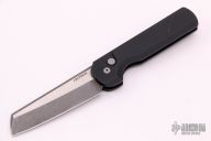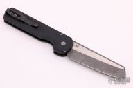 This Slimfoot Auto has a black anodized aluminum handle and an acid stonewashed blade.