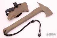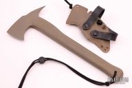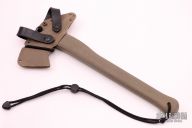 A combination tool developed for Military and Law Enforcement use, the WK Combat Axe is made for breaching and combat applications. The user has easy access with a fast draw carrier. An integral glass breaker extends beyond the end of the handle.
