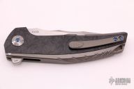The Reate J.A.C.K. offers a sleek integral folding knife design form Solo Jack Chan. This model is outfitted with an integral gray titanium handle with marble carbon fiber inlays, Damasteel pivot collars and a satin finished Bohler M390 steel blade. It's built with double row ceramic ball bearings for satisfying opening action. Upgrade your EDC with the J.A.C.K. from Reate Knives.