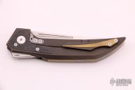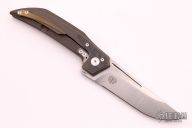 This Future model has a satin finished blade and a titanium handle with a titanium clip and carbon fiber inlays. The Future represents the first ever integral folding knife from Reate Knives. This Bharucha designed flipper offers a 1 piece titanium handle for extreme strength and reliability. The Future is a massive folder with a 4.25" M390 blade, yet it remains slim and sleek for comfortable EDC. A mokuti pocket clip and inlays finish off the collectible design. Features: Integral handle made from a solid billet of titanium provides strength and durability. Bearing pivot disassembles easily for cleaning and maintaining the knife. M390 blade offers extreme sharpness and edge retention. Comes with original box, COA and zippered case. Has some light scratches, otherwise excellent condition. #24/125