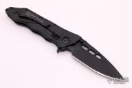 This Helix framelock flipper by Guardian Tactical features a black blade with dual thumbstuds, flipper, and notched thumbrest. The handle has a black G-10 frame, black titanium backspacer and tip up stainless steel clip. Nice detent, lockup and blade seating. Excellent condition. #1045 on clip and dated 10/2016. Comes with original box and papers.