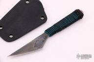 This Shanky-Panky by Michael Shiffer features a chisel ground blade with .168" blade stock and .812" blade depth, hidden tang construction. The handle has black cord wrap over green cord wrap. Comes with a kydex sheath and COA. New from maker.