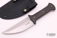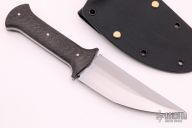 This Jambiya Tactical Persian Dagger by Michael Shiffer features a hand rub satin finished blade with a sharpened top edge, .180" blade stock and 1.708" blade depth, full tang construction. The handle has carbon fiber scales with stainless steel pins. Comes with a kydex sheath. New from maker.