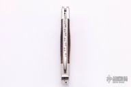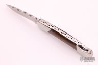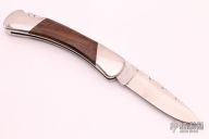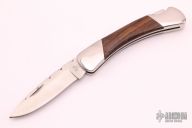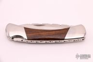 This Model 500 Duke by Buck Knives has been customized by Ed Youngman, he stamped "EY" on the lock release. It has a satin finished drop point blade with nail nick and fileworked spine. The handle has a polished stainless steel frame, custom desert ironwood scales and fileworked backspacer. Comes with a zippered case. Has a few very light scratches, otherwise excellent condition.
