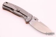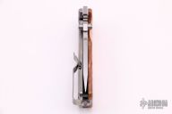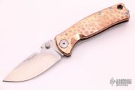 This HEST Framelock Folder by DPx Gear has a stonewashed drop point blade with dual thumbstuds, bottle opener, and wire strippers that also serve as a notched thumb rest. Handle is composed of a hammerstone copper and titanium with a matching tip up clip, glass breaker, and 1/4" hex driver at butt. Excellent Condition. Comes with original box.
