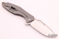 This Arius by Koenig knives features a two-tone blade with thumbhole. The handle has a nicely milled and stonewashed titanium frame, tip up clip with hidden screws and titanium backspacer. Has polished chamfers. Has ceramic bearings and a ceramic detent ball. Nice detent, lockup and blade seating. Comes with original box and COA dated Feb 8th, 2021. Excellent condition.