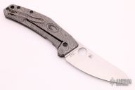 This C211TIP Spydie Chef by Spyderco features a satin finished drop point blade with thumbhole. The handle is comprised of a blasted and tumbled titanium frame over barrel spacers. The tip up clip is reversible for left or right hand carry. Includes original box and papers. Excellent condition.  The handle has been custom laser engraved by Mcnees with Mandalorian theme.