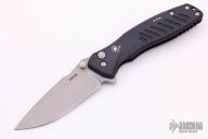 This PALLAS button lock from Spartan Blades features a tumble finished clip point S45VN blade with swedge, dual thumb studs, notched thumb rest and flipper. The handle is comprised of a milled and black anodized aluminum frame over stainless steel barrel spacers. Titanium tip up clip and lanyard hole in pommel. Excellent condition. Comes with original box.