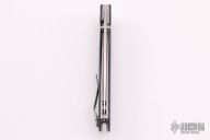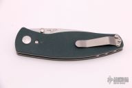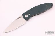This Neutron Linerlock by Three Rivers features a stonewash finished blade with dual thumbstuds. The handle has green G-10 scales, titanium liners and tip up reversible clip. Nice detent, lockup and blade seating. Comes with original box, papers and a set of black/blue carbon fiber scales. Excellent condition.