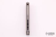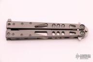 This Tachyon balisong by Microtech has a tumbled clip point blade and skeletonized bead blast titanium handles. Includes original velcro sheath. Excellent Condition. Dated 09/2002 and #1545