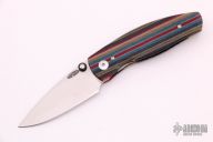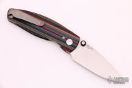 This Neutron Linerlock by Three Rivers features a stonewash finished blade with dual thumbstuds. The handle has micarta scales, titanium liners with a matching tip up reversible clip. Nice detent, lockup and blade seating. Comes with original box, papers and a set of gray G10 scales. Excellent condition.