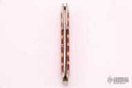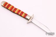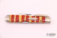 This Cheetah lock back folder from Case Knives features a clip point mirror polished blade with nail nick. The handle has nickel silver bolsters, front and rear, and swing guard, and the scales are acrylic over brass liners. Has some light scratches, otherwise excellent condition.
