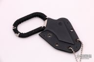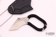 This Polished Hybrid by Hideaway Knives features a satin finished tanto recurve blade with notched thumbrest and cord wrapped grip, .130" blade stock and 1.010" blade depth, full tang construction. Comes with a kydex neck sheath and original packaging. New from maker.