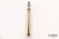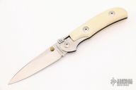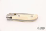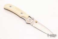 This One Hand Knife features mammoth ivory scales and a satin finished blade. Includes a zippered case and papers. Excellent condition.