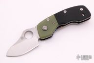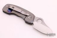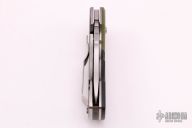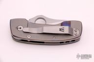 This frame lock by Kevin Wilins features a satin finished blade with a thumbhole and notched thumbrest.  The handle has G10 scales over a stonewashed titanum frame.  Stainless Steel tip up pocket clip and a micarta backspacer.  Includes a padded zippered case.  Excellent condition.