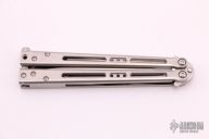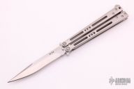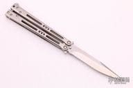 This Tempest Balisong from Jerry Hom features a satin finished balde with swedge. The handle is comprised of milled titanium handles with satin titanium backspacers and T latch. Includes a zippered case and COA dated 2/5/14. Excellent condition.