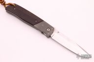 Bob Terzuola was born in Brooklyn, New York and attended New York University. Upon graduation in 1967 he went to Panama as a Peace Corps trainer and later became a jade carver and gemologist in the Motagua River Valley, Guatemala. In 1979, Terzuola began making knives and joined the Knifemakers' Guild in 1981 on an endorsement from Bob Loveless. Terzuola's first knives were fixed blade designs made for soldiers in Guatemala. Later that year moved to New Mexico and began making folding knives. Seeing a need for a knife that could be carried discreetly, he developed a model featuring black micarta for the scales and bead-blasted titanium bolsters. Innovations in desgin for which he coined the term "Tactical Knife". Bob attends many of the largest and well known custom knife shows across the world. Bob Terzuola Knives are known for their trademark design and high quality workmanship. Terzuola's most popular model is the ATCF, a folding knife design. This was his first tactical folding knife, although he also makes it with non-tactical materials. Other knife models that Bob Terzuola is popular for are the 3A, TT-1, Model 7, Eagle Rock 514, TTF3A, Model 26, Starmate, TTF3B, Pathfinder, Century Starfighter, Starmate, Battle Guard, TTF6, Model 18 Combat Master, WEE T, and Battle Mate, just to name a few. Bob Terzuola also designed a very popular knife for Spyderco, the SLIPIT. The SPLIT is made of the finest non-locking tactical folders on the market. Bob Terzuola has authored a book about the design of tactical knives named, 'The Tactical Folding Knife.' When you hear people say that Bob Terzuola literally wrote the book on tactical folding knives, he really did! Many custom tactical knifemakers have his book in their shop, and highly value his opinions and designs. Bob Terzuola has also authored articles about tactical knives and knifemaking for Blade, Soldier of Fortune and other publications.