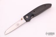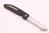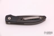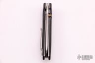 This TTF-6 linerlock folder features a stonewashed blade with a single thumbstud.  The handle has black bolsters, carbon fiber scales and backspcaer over titanium liners.  Tip up titanium pocket clip.  Nice detent, lockup and blade seating.  Excellent Condition.
