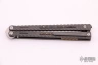 Obsidian Balisong collaboration between from Maxace & Midnightcat Studios. Outstanding fit and finish with S90V blades and Fat Carbon inlays to the highly detailed handles. The innovative new latch design on these Balisongs offers a fresh new take on the old, there is actually a spring inside of the latch that pushes against the T at the and to create tension. Each knife includes a zip up pouch, dust cloth and trainer blade. Built for years of flipping with the same quality and performance that we are used for all Maxace products.