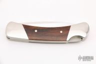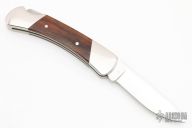 This Model 500 Duke by Buck Knives has a mirror polished blade with nail nick and the Statue of Liberty. The handle has a polished stainless steel frame, wood scales and stainless steel backspacer. Comes with a zippered case. Excellent condition. Made in 1986