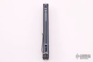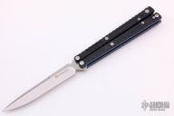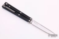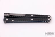 This Obsidian Balisong by Maxace features a satin finished blade. The handles have carved G-10 scales with anodized titanium liners and a titanium spring latch. Comes with original box and zippered case. New from maker. Blade steel: 14C28N