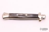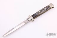 Angelo Campolin Sr. was born in 1923 in Maniago, Italy. He worked on perfecting his knife making skills before WWII and at this time made his first switchblades. After the war, in 1947 he started his company and made 30 stilettos with the marking “Angelo Campolin”. In the 1970’s Angelo’s son Gianni started to work in the company and they were specializing in folding hunting knives and also manual folding stilettos for the Robert Klaas company in Solingen Germany with their Kissing Cranes mark. In 2002 American switchblade collectors Dan Fuller, Brad West, and Tim Zinser were visiting Maniago and enjoying a few glasses of wine in a bar with Angelo Jr. and Gianni. The discussion was about a new name for some knife projects they wanted to pursue. It was Brad West that suggested the tang stamp should be AGA, for Angelo, Gianni, Angelo, thus representing three generations in the knife making business. The Campolins liked it and it stuck. In the beginning it was just a few items, but grew to the point where now there are 12 models and different scale options. The goal has been to offer quality switchblades using the old methods and traditions. Being a collector himself, Angelo Jr. knows what others like. The company headquarters has moved to Austria with production still in the original Maniago shop, as well as the others in Maniago that produce the knives for A.G.A. Campolin.