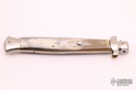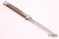 Angelo Campolin Sr. was born in 1923 in Maniago, Italy. He worked on perfecting his knife making skills before WWII and at this time made his first switchblades. After the war, in 1947 he started his company and made 30 stilettos with the marking “Angelo Campolin”. In the 1970’s Angelo’s son Gianni started to work in the company and they were specializing in folding hunting knives and also manual folding stilettos for the Robert Klaas company in Solingen Germany with their Kissing Cranes mark. In 2002 American switchblade collectors Dan Fuller, Brad West, and Tim Zinser were visiting Maniago and enjoying a few glasses of wine in a bar with Angelo Jr. and Gianni. The discussion was about a new name for some knife projects they wanted to pursue. It was Brad West that suggested the tang stamp should be AGA, for Angelo, Gianni, Angelo, thus representing three generations in the knife making business. The Campolins liked it and it stuck. In the beginning it was just a few items, but grew to the point where now there are 12 models and different scale options. The goal has been to offer quality switchblades using the old methods and traditions. Being a collector himself, Angelo Jr. knows what others like. The company headquarters has moved to Austria with production still in the original Maniago shop, as well as the others in Maniago that produce the knives for A.G.A. Campolin.